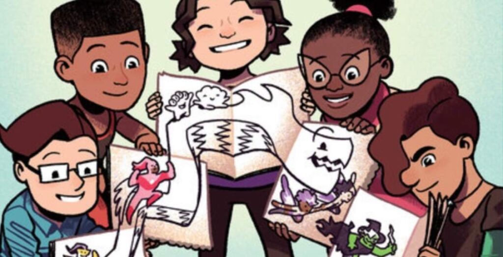 Doodleville is published by Random House Graphic and is written and drawn by Chad Sells. Meet Drew. Drew is a young girl who loves to doodle. She spends most of her time in her parents’ dinner just doodling away. But Drew’s doodles come to life! They run around and explore. But their shenanigans eventually get out of hand so Drew creates a home for them on her bedroom wall. That home is Doodleville. But when she absentmindedly takes her doodles with her on a trip to the art museum, things start to change.