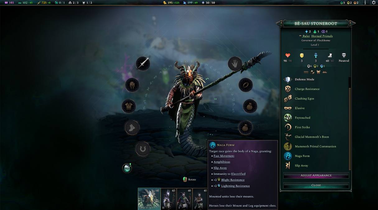 - Tome of the Stormborne: Focuses on control of water and lightning. Gain powerful economic buffs from ocean provinces, build fearsome Stormbringer units, and transform your armies into Naga!