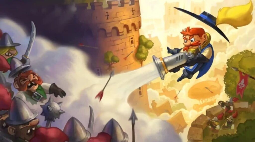 The core gameplay loop is hit or miss. Players run through levels as the musketeer, slashing enemies with a sword, blasting them with a pistol, tossing bombs, or throwing enemies at the walls or each other. The throw is a favorite. It’s always funny picking them up and sending them careening across the screen. Get to the end of the level as fast as you can, and level complete.
